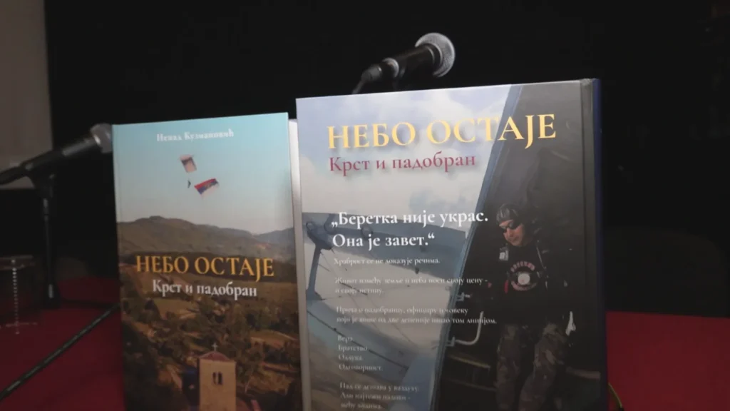 У малој сали Народног позоришта у Нишу одржана је промоција књиге „Небо остаје – крст и падобран“, аутора Ненада Kузмановића, некадашњег припадника 63. падобранске бригаде. Реч је о делу које кроз лична сведочења, успомене и имена сабораца чува сећање на људе и догађаје који су обележили једно време, али и оставили дубок траг у историји одбране отаџбине.